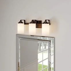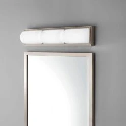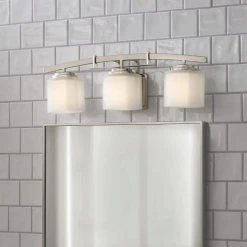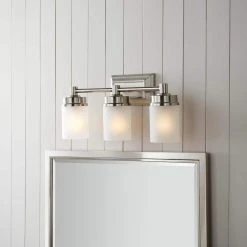 Hampton Bay Architecture 3-Light Brushed Nickel Vanity Light with Etched White Glass Shades