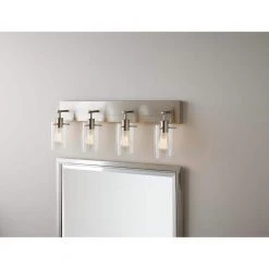 Hampton Bay Regan 29.13 in. 4-Light Brushed Nickel Bathroom Vanity Light with Clear Glass Shades