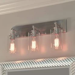 Hampton Bay Regan 21 in. 3-Light Brushed Nickel Bathroom Vanity Light with Clear Glass Shades