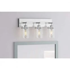 Hampton Bay Wakefield 22 in. 3-Light Chrome Modern Wall Mount Sconce Light with Clear Glass Shades