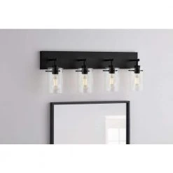Hampton Bay Regan 29.25 in. 4-Light Matte Black Bathroom Vanity Light with Clear Glass Shades