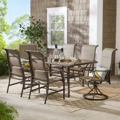 Hampton Bay Riverbrook Espresso Brown Swivel Steel Padded Sling Outdoor Patio Dining Chairs (2-Pack)