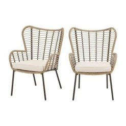Hampton Bay Tolston Wicker Outdoor Patio Stationary Lounge Chairs with Charcoal Cushions (2-Pack)