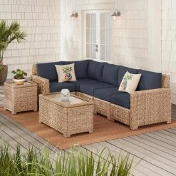 Hampton Bay Laguna Point Natural Tan Wicker Square Outdoor Patio Side Table with Captured Glass Top