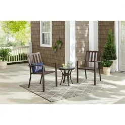 Hampton Bay Riverbrook Espresso Brown Round Steel Glass Top Outdoor Patio Side Table