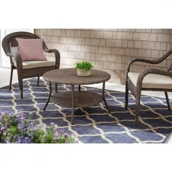 Hampton Bay 32 in. Mix and Match Brown Round Wicker Outdoor Patio Coffee Table With Woven Table Top