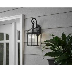 Hampton Bay Wilhelm 12 in. 1-Light Black Farmhouse Semi-Flush Mount Kitchen Ceiling Light Fixture